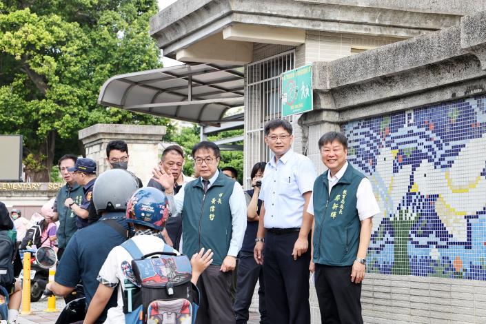 暑假結束迎來新學期,臺南市長黃偉哲今(1)日一大早偕同教育局長鄭新輝前往永康國小,親自迎接學生返校上課,並視察校園防疫措施與交通安全執行情形。透過寓教於樂的方式向學生宣導腸病毒、流感與登革熱等防疫重點,包含勤洗手、戴口罩、接種疫苗與維持良好衛生習慣等生活化知識,與學生進行有獎徵答互動,現場氣氛熱絡,學生踴躍參與,在歡笑中開啟新學期序幕。