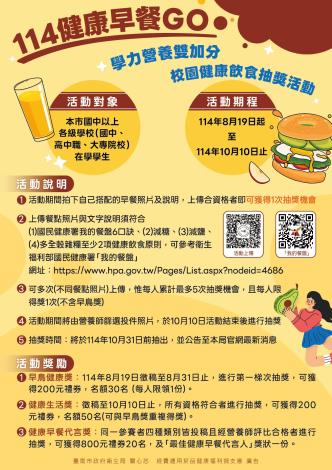 市長進一步表示,青少年正處於身心發展的關鍵期,均衡營養對學習力與長遠健康都有決定性影響。他強調:「良好生活習慣從早餐開始,吃出健康力,就是贏在起跑點。」並呼籲家庭與學校攜手合作,引導學生養成正確飲食觀念,維持理想體位。