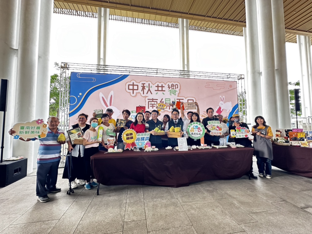 中秋佳節將至,臺南市長黃偉哲推廣臺南在地優質農特產品,9月20、21日及26日分別在臺南市圖新總館及民治市政中心舉辦「中秋共饗 南得極品」展售活動,今(21)日 15家農、漁會及小農販售相關中秋當季水果、加工產品、生鮮水產品、放牧蛋等烤肉食材、聚會零嘴,搶搭中秋過節需求,商品一應俱全,現場還有有獎問答、按讚「南得極品」FB粉絲專頁即可獲得芭樂冰沙乙份、冰皮月餅DIY等活動,搭上總圖館慶,現場熱鬧滾滾,人潮絡繹不絕。