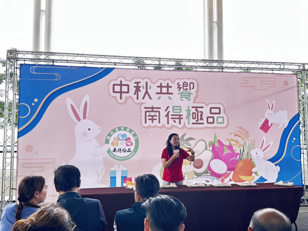 農業局長李芳林表示,「南得極品」為臺南市的農產品評鑑標章,強調在地生產、食品安全及可追溯性,透過嚴格查核機制,精選出最優質的在地農特產品。此次總圖場展售獲南得極品標章認證的產品有橄欖系列、龍眼蜜、虱目魚酥、魚酥、芝麻系列產品、紅蔥酥油、鴨蛋捲等,同時有產地農會及小農帶來柚類鮮果、芭樂、皮蛋、鹹鴨蛋、肉鬆、肉乾、香米、果醬、茶品、虱目魚丸及香腸、小農放牧蛋等伴手禮盒、時令蔬果等,讓大家中秋美味「饗」不完。