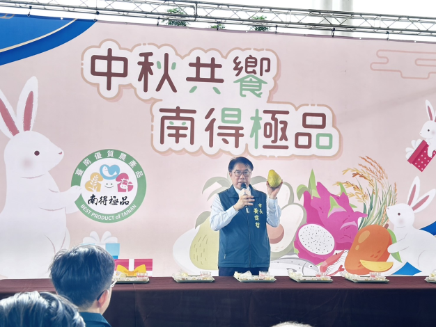 臺南市長黃偉哲表示,臺南不只是全臺第一的文旦產區,還有眾多的農漁畜產品,因應民眾送禮想要別出新裁,買在地特色、買健康美味,向消費者推薦選購臺南中秋好禮,眾多優質產品歡迎選購。