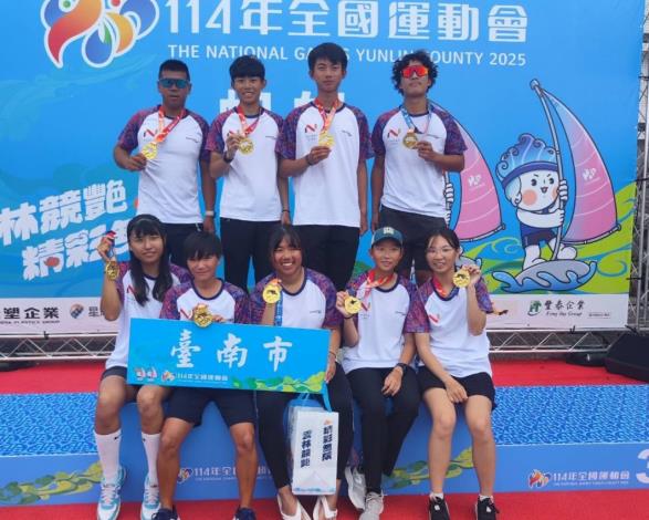 114年全國運動會帆船項目於本(26)日完成最終賽程,臺南市代表隊在澎湖馬公海域驚艷全場,以7金7銀4銅,共18面獎牌的傲人成績榮登帆船項目最大贏家,再次印證臺南市在帆船競技場域的領航角色。