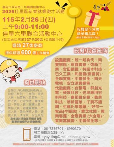 (發稿人:職訓就服中心06-7236701)