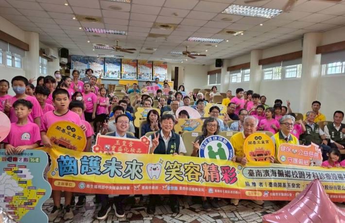 南市教育局長鄭新輝及健保署南區業務組組長林純美到場感謝捐贈牙科診療設備的開基玉皇宮、將寶實業等民間團體代表及參與偏鄉巡迴醫療的牙醫師,投入偏鄉口腔保健,優化偏鄉醫療品質。尤其玉皇宮繼111年捐贈本市10所偏鄉學校牙科診療設備,今年再度送愛偏鄉,累計捐贈14校;牙醫師公會在偏鄉醫療的長期投入更是功不可沒。