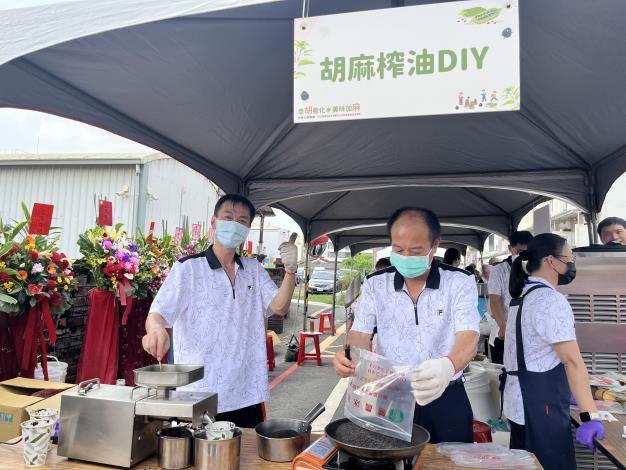 農業局長李芳林指出,臺南市為全臺胡麻最大產區,種植面積約1,215公頃,其中善化胡麻的種植面積約175頃,為本市重要胡麻生產重鎮之一。善化區農會長年與農民契作並辦理收購,積極推動胡麻產業發展,並以自有品牌「醇善」為胡麻系列產品名稱,持續研發多樣胡麻加工品,如胡麻油、芝麻醬、芝麻糕點與冰品等,展現在地農產創新能量。鼓勵民眾把握今日活動優惠多加購買相關系列商品,一同支持在地香醇又營養的芝麻好滋味。