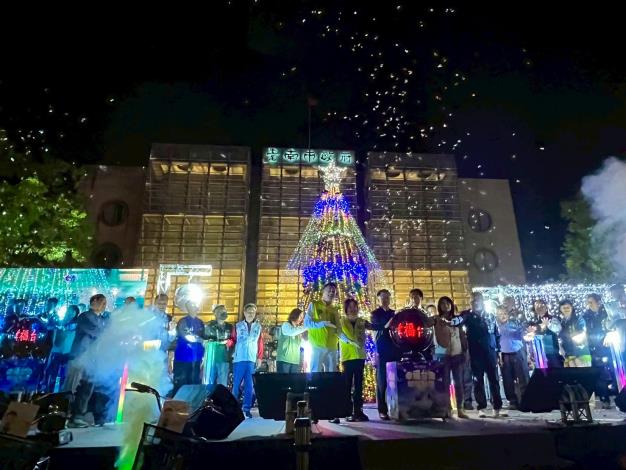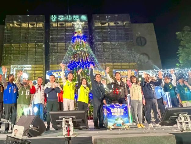 黃偉哲市長在晚間6時20分親自點亮幸福耶誕樹,並與新營牧者聯禱會多位牧師一起為臺南祝禱,祝福今晚的活動圓滿成功!市民朋友在新的一年,身體健康、萬事如意!偉哲市長表示,從0121楠西地震到0708丹娜絲颱風,大自然極端氣候的嚴竣挑戰,對溪北地區造成災害,市府除了跨局處全力投入災後復原工作外,更積極投入建構韌性城市的市政工作,來強化基層社區的自我防護能力,守護市民生命財產安全。