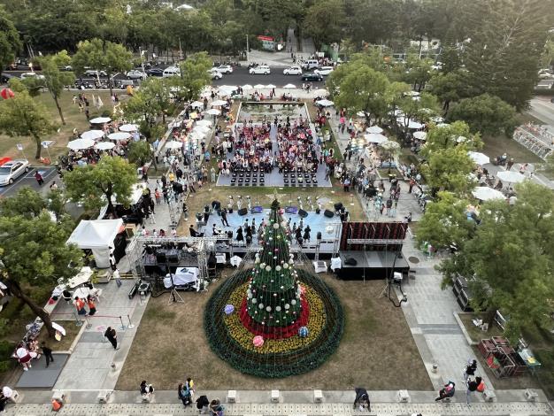 秘書處表示,今天下午2點開始職人手作、美食品項豐富的倉庫市集開賣,3點30分舞台區,由Monay樂團揭開序幕,在陳凱倫精湛的主持下,由新營活泉教會的耶誕敬拜開場,緊接著由在地團體有萬是幼兒園的可愛的舞蹈演出,育德工業家事職業學校的勁歌熱舞以及右武衛兒童合唱團的純淨演唱。
