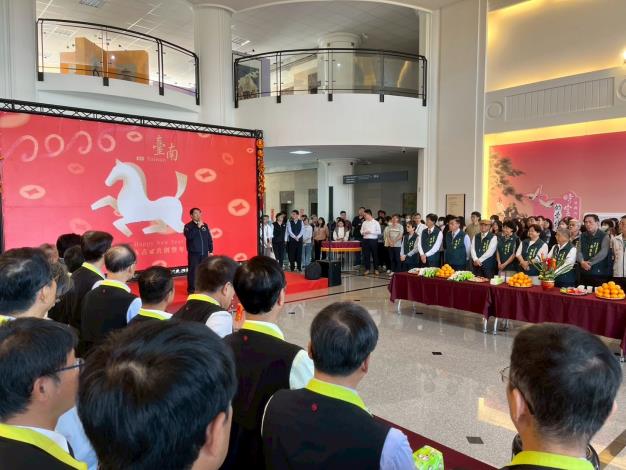 黃市長表示,回顧過去一年,臺南受天災影響甚劇,特別要感謝市府同仁第一時間即動員各項人力與資源,全力投入災後復原與重建,尤其是市民們的配合,與市府共同致力復原家園。展望馬年,黃市長也期許市府團隊要持續強化交通、醫療、環境等各方面的安全保障,確保市民的生活更安心,同時也表達對觀光、文化創意產業的支持,並積極促進青年創業,讓臺南成為一個充滿機會、活力與創意的城市,並且吸引更多企業與投資,創造穩定的工作機會,提升市民的生活品質,把臺南打造成為一個充滿機會、活力、創意、宜居及具有國際競爭力的城市。