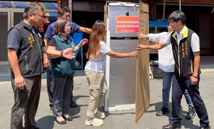 臺南市政府經發局自111年起迄今,透過經濟部能源署補助經費辦理「能源弱勢族群節能改善計畫」,協助轄內弱勢家庭進行老舊冷氣、冰箱汰換。今(114)年因颱風、豪雨等天災侵襲,使部分地區受到嚴重破壞,其中更有許多弱勢家庭房屋受損,家中電器也因為淹水或雨淋損壞,使原本不寬裕的生活變得更加困難,在經濟條件限制下,要快速回歸正常生活運作實有困難。為加速弱勢家庭恢復日常生活,經發局率先運用「能源弱勢族群節能改善計畫」,針對老舊冷氣、冰箱及燈具等高耗能設備優先進行改善。除市府經費挹注外,更結合臺南市直轄市商業總會以及在地企業資源,透過公私協力模式,將關懷與節能工作發揮最大能量。