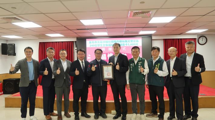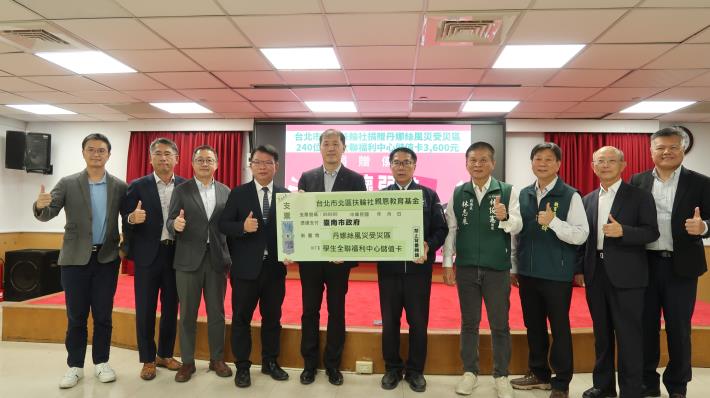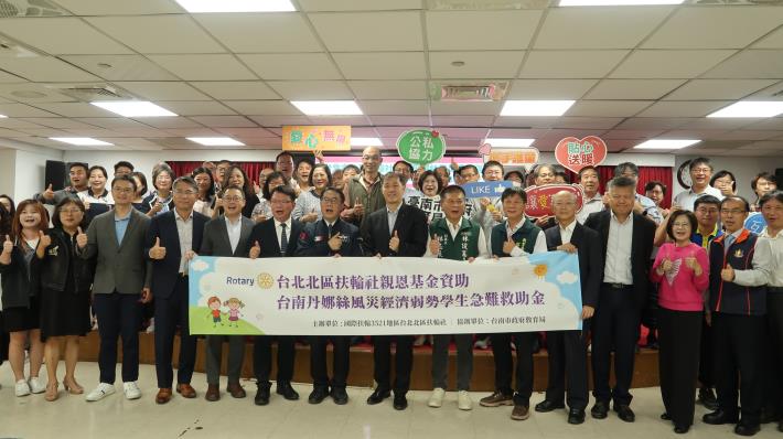 台北市北區扶輪社親恩慈善基金關懷受丹娜絲颱風影響的災區學生,捐贈全聯福利中心儲值卡3,600元協助學生及家庭災後度過生活難關,共有61校240名學生受惠,總發放金額達新臺幣86萬餘元。捐贈表揚儀式今(1)日在市府永華市政中心舉辦,市長黃偉哲致贈感謝狀,與受贈學校代表共同感謝捐贈團體的善舉。