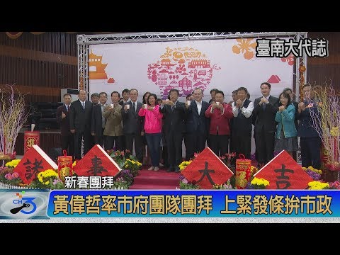 2月11日是農曆年後第一個上班日,臺南市政府分別在永華及民治行政中心舉行108年新春團拜,臺南市長黃偉哲與許育典副市長、王時思副市長、方進呈秘書長及各局處首長、同仁互祝新春快樂,場面相當熱鬧。黃市長期許市府同仁在新的年度,能提供市民更好的服務,更有效率的施政,交出一張更亮麗的成績單。 黃市長首先感謝在春節年假裡辛苦的環保、交通、警消等各單位執勤人員及志工夥伴;他們犧牲個人的休假時間,為了維護這個城市的交通順暢、環境清潔、治安維持而付出,隨時待命投入防救災搶險的工作,他謹代表市民對這群默默奉獻的同仁表達深切的敬意跟謝意。