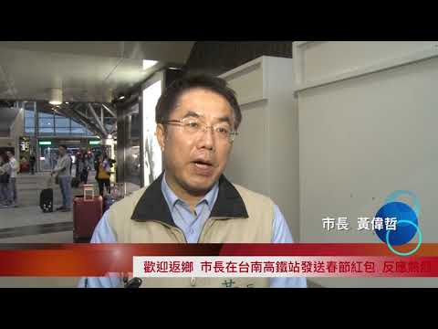 為迎接在外求學及工作的台南遊子回家過年,台南市長黃偉哲二月一日下午特別到高鐵台南站發紅包,現場人潮不斷,洋溢熱鬧的年節氣氛,拿到市長紅包的民眾都很開心能在春節年假的開始就討個好彩頭。黃市長除了發紅包,也提前向每位旅客拜年,祝福大家新的一年諸事順利,心想事成。