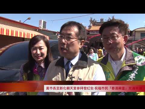 祈求台南市新的一年平安順利,市長黃偉哲3日來到新化朝天宮及太子宮參拜,祈求眾神能保佑所有市民平平安安、事事順遂、諸事大吉。市長也與在場民眾一一握手歡喜拜年,並發送紅包為市民添喜氣。今年的紅包上印著「春滿興富」四個字,意喻台南能生機蓬勃、興隆富裕、充滿幸福。