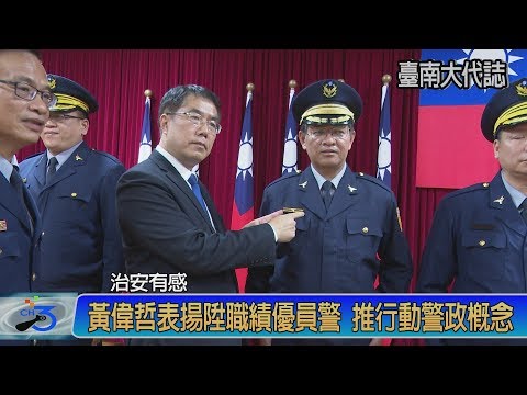 感謝警察同仁守護市民的生命財產安全,默默為治安工作奉獻的辛勞,2/14日下午市長黃偉哲前往新營警察局訪視,並表揚陞職授階員警9人、偵破重大刑案有功員警14人、好人好事事蹟代表9人、受理民眾報案服務態度績優1人。市長同時期勉警察同仁繼續打拚,秉持做好治安工作的熱情,守護繁榮大臺南,讓治安有感、交通有感,愛民也要有感。