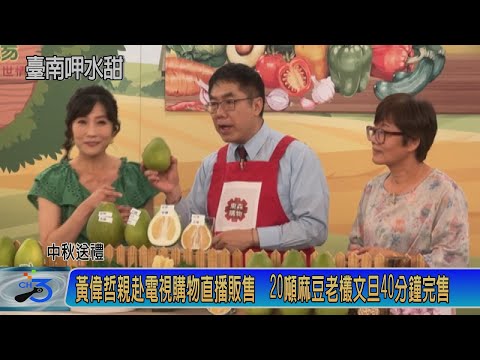 臺南市長黃偉哲致力行銷在地農特產,8/8日再度親赴東森農場電商購物直播,協助果農力推臺南文旦,20公噸麻豆老欉文旦在40分鐘內火速售完,顯示麻豆文旦在消費者心中已建立良好口碑和信賴。