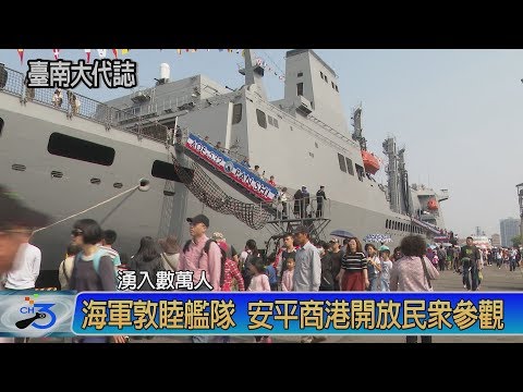 海軍敦睦遠訓支隊3月17、18日2天停靠在安平商港開放參觀,3/17日一大早就吸引無數軍事迷與民眾前來共襄盛舉,台南市市長黃偉哲也應邀出席開幕活動,代表市民向海軍致上十二萬分的敬意,民眾可以在港口的廣場欣賞海軍官校鼓號樂隊、海軍樂儀隊及莒拳隊的精彩表演,也可以登艦參觀,一睹海軍建軍備戰的成果及壯盛軍容。