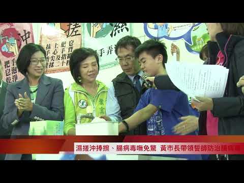 加強宣導正確校園腸病毒防疫觀念,台南市政府23日於新營區新泰國小舉辦「濕搓沖捧擦、腸病毒嘸免驚」108年台南市腸病毒防治誓師活動,台南市長黃偉哲、衛生福利部疾病管制署南區管制中心主任李翠鳳、衛生局局長陳怡與教育局副局長王崑源等貴賓皆到場一同以行動宣導手部衛生觀念。