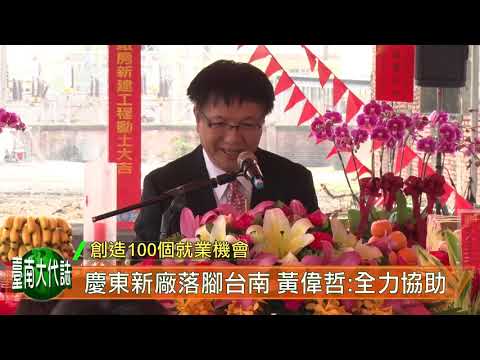 慶東國際股份有限公司及慶洲股份有限公司,3月11日舉行台南市新市區七王段新廠房興建工程動土典禮,新設廠房占地1.81公頃,投資金額約新台幣8億元,將可創造100個就業機會。市長黃偉哲受邀出席,感謝黃河洲董事長投資台南,並表示將全力協助行政流程。
