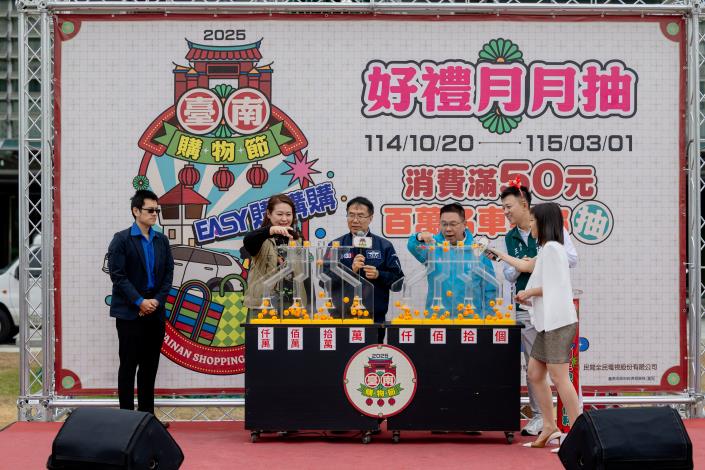 2025臺南購物節熱度持續升溫,為城市經濟注入強勁動能,活動開跑以來買氣暢旺,截至目前累積登錄金額已突破45億。今(25)日上午市府經濟發展局於民治市政中心市民廣場盛大舉行臺南購物節「好禮月月抽」第2 ...更多