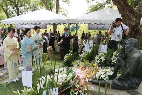 八田与一氏の令孫である八田修一氏は「銅像が破壊されたと知った時は非常に残念だった。しかしどの国でもこのような事件が発生する可能性はあるので、不満に感じることはなかった。本日ここに完全に修復された姿を自らの目で見ることが出来、非常に嬉しく思う。また頼市長、嘉南農田水利会楊会長及び奇美博物館許文龍先生のご協力、そして台湾の多くの皆さんの支持に感謝したい。台日友情は揺るがない、毎年この追悼祭に参加するつもりである。」と感謝の意を述べました。