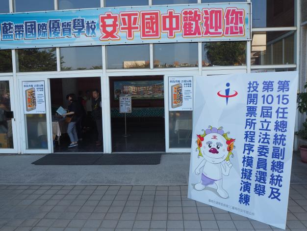臺南市選舉委員會今(2)日於臺南市立安平國民中學安平館舉辦「第15任總統副總統及第10屆立法委員投開票程序模擬演練」觀摩會,邀請130位民眾親自體驗投票,以實際測試投票所需時間,並就投票、開票程序及突發狀況等進行演練,來提升選務人員應變能力。
