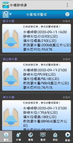 水利局表示,民眾只要在Google Play 或iTunes Store 搜尋『台南水情即時通』即可進行下載安裝,只要行動裝置開機且連上網際網路,除了可收到水庫洩洪訊息外,也可收到氣象特報、水情資訊…等。