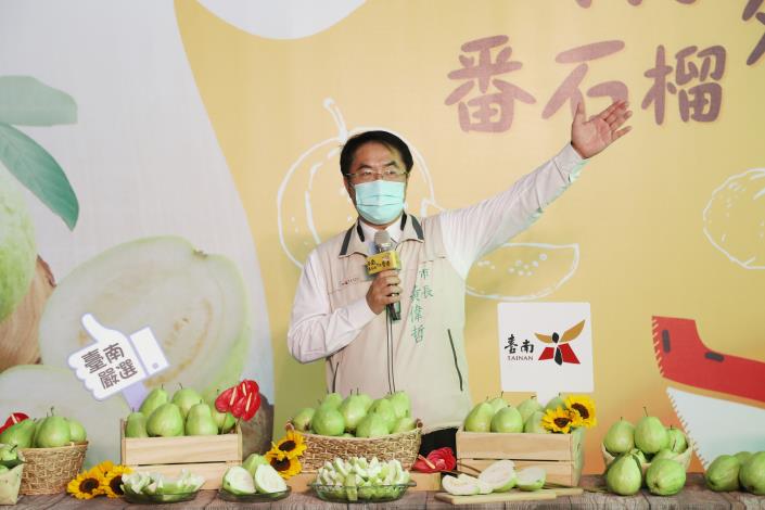 台南市長黃偉哲表示,現在因為疫情人出不了國,雖然人出不了國,但台南有許多優良的農產品可以出國,台南除了有三大主力產品-鳳梨、芒果、文旦去打亞洲盃、打世界盃,現在芭樂也要擠進打亞洲盃、打世界盃的行列,其實芭樂去年已經開始行銷美國,另外加拿大也已經行銷好多年,現在也行銷到港澳,所以他很感謝各位的幫忙,讓台南優質的產品、水果能行銷出去。