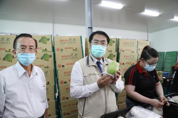 正值台南芭樂產期,而且要外銷出國,台南市長黃偉哲今(22)日前往楠西區福農果菜運銷合作社集貨包裝場視察芭樂外銷香港的情形,黃偉哲說,秋冬之季台南芭樂進入盛產期,口感及品質俱佳,他鼓勵大家多多選購食用,而芭樂也是楠西區的主要外銷農產品,目前台灣芭樂外銷以加拿大為主,香港居次,而且每年持續穩定的出口。