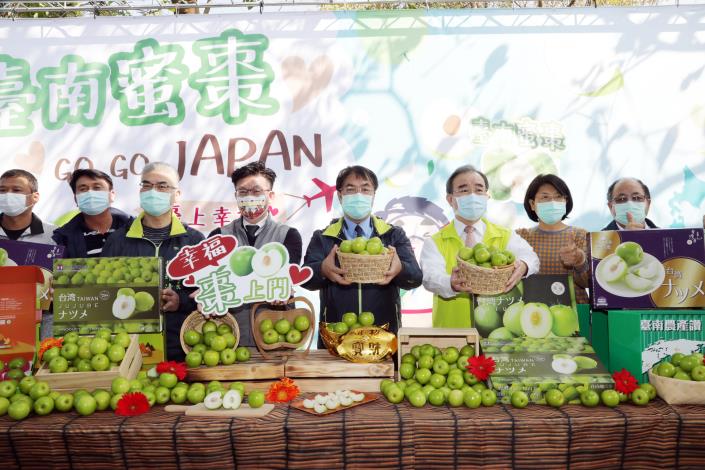 台南蜜棗進入採收期,由產地台南市楠西區集貨2,500箱約6.2噸蜜棗禮盒,預計2月中旬空運搶攻日本高端市場。為慶祝台南蜜棗持續外銷日本突破去年總銷量,今(31)日特別舉辦「台南蜜棗GO GO JAPAN」記者會,由台南市長黃偉哲、農糧署長胡忠一以及立法委員郭國文,一起體驗蜜棗從撿選至包裝上櫃的過程,一起為台南之光加油打氣!