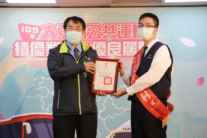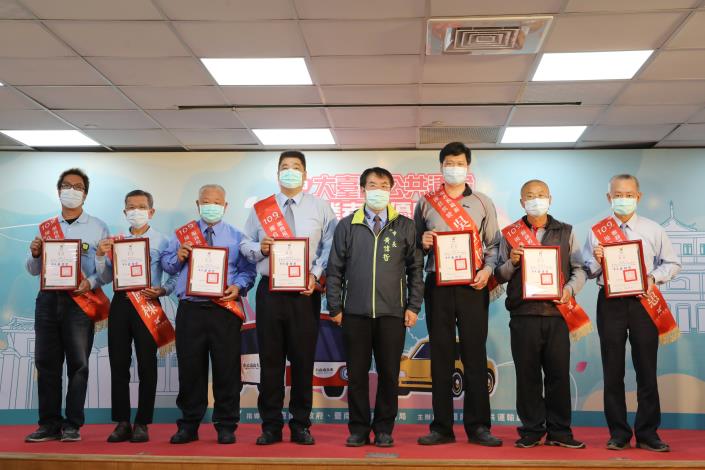 台南市今(1)日舉行「109年大台南公共運輸績優業者暨優良駕駛表揚典禮」,台南市長黃偉哲頒獎表揚10家績優業者、20位優良駕駛、1防疫計程車司機林泳村榮獲特殊貢獻獎,他肯定駕駛及業者的貢獻,更期勉業者、從業人員成為南市優質公共運輸的典範,勉勵駕駛長提供貼心服務讓乘客有美好乘車經驗,以感恩的心向公運英雄們表達感謝之意。
