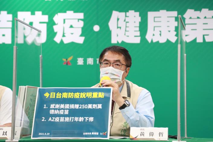黃偉哲也再次呼籲,疫苗施打對象仍需遵照中央公布的接種順序,且莫德納疫苗預估最快也要幾天後才會撥配地方,病毒不等人,請符合接種資格的民眾不要挑廠牌,「該施打疫苗的,請趕快去施打」。