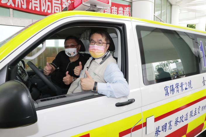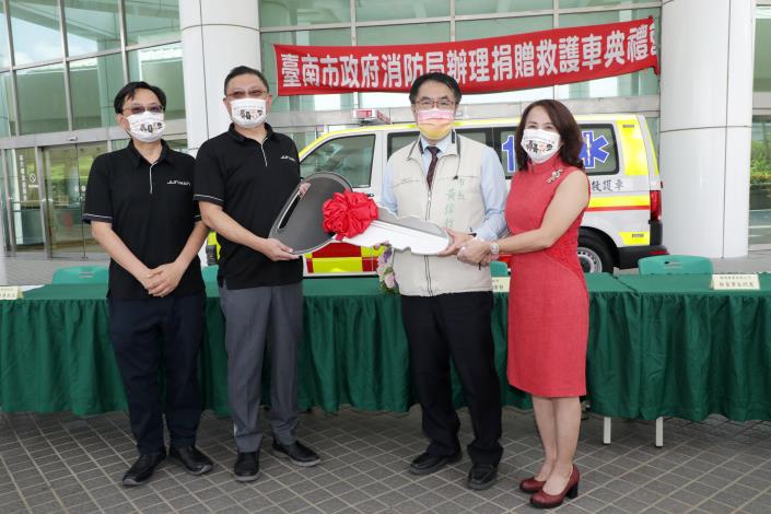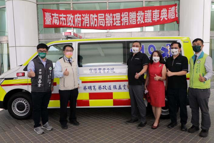 寯陽實業有限公司董事長蔡明憲先生、副總經理蔡政道先生,以及董事長特助張孟雯女士,秉持著取之於社會、用之於社會的回饋精神,捐贈台南市政府第六救災救護大隊永華分隊救護車1輛,並於今(2)日由台南市長黃偉哲代表受贈並辦理啟用儀式。