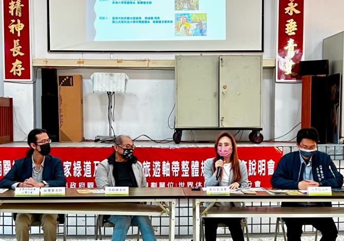 臺南市政府觀光旅遊局郭貞慧局長表示,本案以生態、人文地景思維進行環境盤點規劃,期待以慢遊、健康及永續旅行營造臺南的觀光旅遊品牌,進而針對觀光旅遊軸帶進行軟硬體建設整合與服務品質提升,提倡深度體驗 及交流、帶動當地經濟、保護自然環境資源、尊重地方習俗及文化、注重旅 遊品質及旅行經驗分享與回饋等。希望能藉由說明會與在地民眾有不同面向之溝通,提升規劃層面深度傾聽民意,以利後續之規劃與政策執行方向。