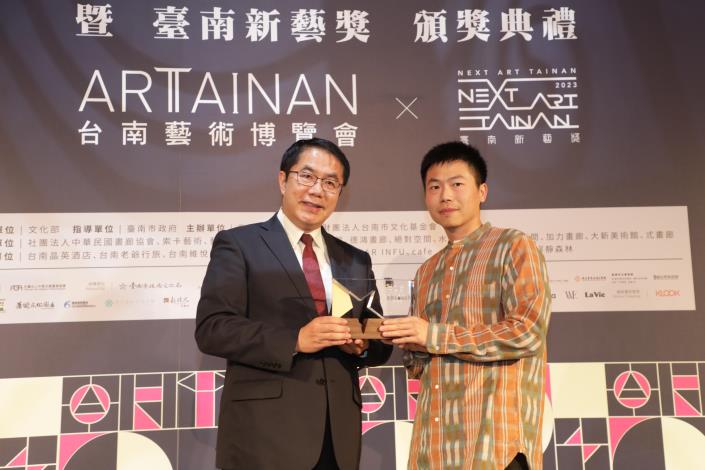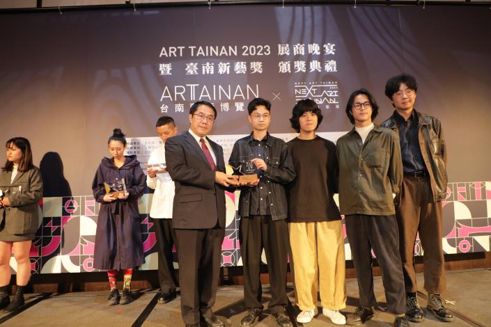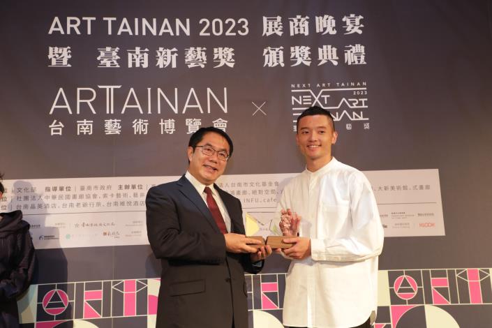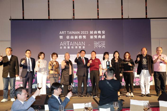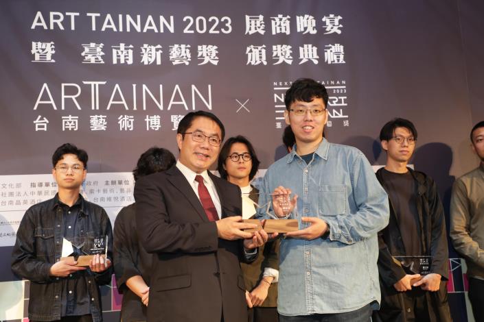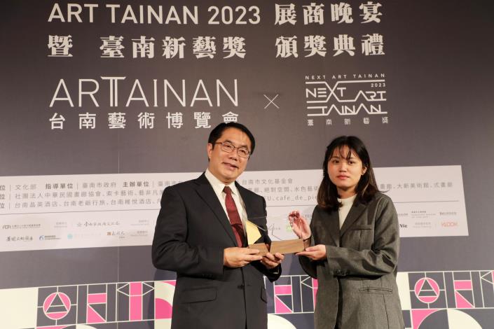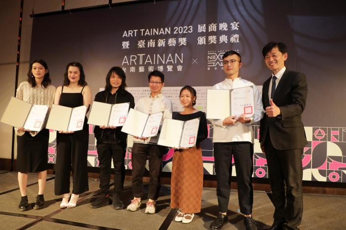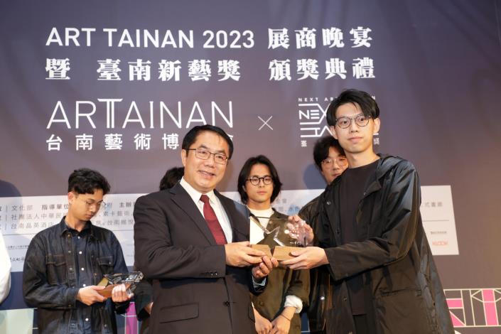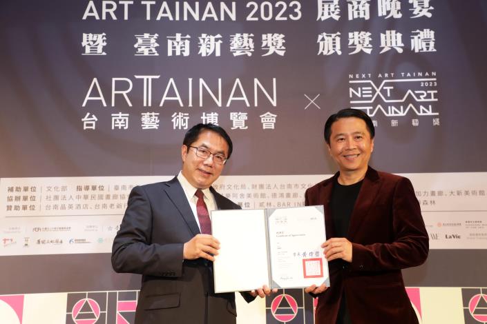 「ART TAINAN 2023 臺南藝術博覽會」3月17日至19日於臺南晶英酒店展出,邁入第11年與臺南新藝獎合作,今(16日)晚舉辦臺南藝術博覽會晚宴暨新藝獎頒獎典禮,邀請臺南市長黃偉哲、副市長葉澤山及文化部藝術發展司專門委員賴世哲頒發獎狀予策展人、新藝獎得主藝術家、新藝獎邀展藝術家、畫廊空間代表,感謝來自藝文界的藝術家齊聚交流,讓更多人體會藝術的博大精深。