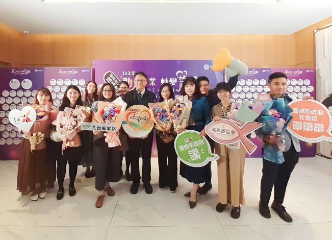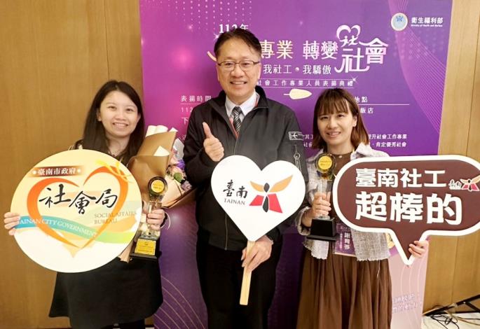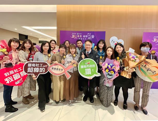 4月2日是全國社工日,衛生福利部為感謝社工夥伴在一線的努力與付出,昨 (29) 日下午在臺北市萬華區凱達大飯店辦理「112年度全國社會工作專業人員表揚典禮」,臺南市社工夥伴表現優異,共有15位公私部門社工人員獲奬,社會局盧禹璁局長特別親自率隊北上出席頒奬典禮,並代表黃偉哲市長向得獎社工致贈祝賀花束,感謝社工人員長期在社褔崗位上的辛勞付出。