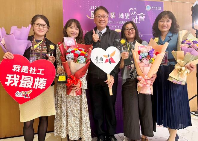 「績優社工督導奬」2位獲獎,家暴防治中心郭書婷督導及蘆葦啟智中心謝育芩督導;另「績優社工奬」6位獲獎,為社會局王致濠社工員、家暴防治中心沈秋含社工師(已調任臺南大學)、臺南監獄郭玟蘭社工師、美善社福基金會蕭雅雯社工員、嘉南療養院廖若亘社工師及奇美醫院吳惠娟社工師等。