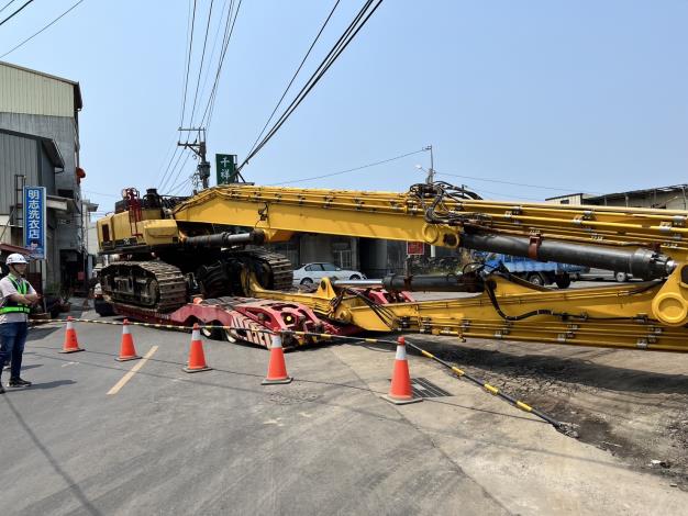 市府獲報立即緊急動員指示合約廠商立即進行搶修,已於下午1點43分順利移除打樁機及載運車輛,並於2點30分先行恢復單線雙向通行,工程單位於道路破損處先行鋪設鐵板並於前後設置交通錐、連桿及警示燈等交維設施,以提醒用路人安全,並派遣交管人員進行警示指揮交通。工程單位預計於112年4月1日先行將受損部分進行修復,避免影響用路民眾權益,同時也提醒民眾,道路及箱涵施工期間灣裡路211巷將採單線雙向通行,並派遣交管人員於現場進行車輛引導,請用路人盡量避開該路段或繞道行駛,以維施工及行車安全。