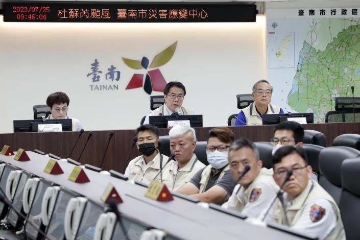 根據中央氣象局預報資料顯示,中度颱風杜蘇芮預計將於27、28日接近影響南臺灣,南市府今(25)日參加行政院召開臺南市災害應變中心整備視訊會議,由市長黃偉哲向行政院長陳建仁報告臺南市防颱整備工作。對於中央挹注防汛經費及國軍颱風期間的支援,黃偉哲表示感謝,也強調已針對轄內麻豆、安南、永康及仁德等易淹水熱區加強戒備,未來將持續密切關注颱風動態,確保民眾生命財產安全。