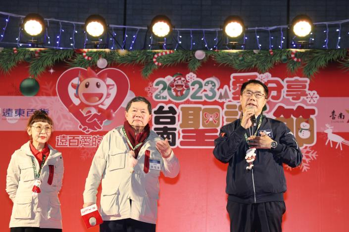 市長黃偉哲表示,感謝遠東集團徐董事長15年來持續舉辦公益活動,本次點亮聖誕樹活動,也象徵市府攜手企業共同向偏鄉學童傳遞愛與溫暖的時刻。臺南因為有來自各界好友的參與,一直是一個非常有溫度的城市,期盼這份愛心和溫暖,能在這個寒冷的季節裡蔓延開來,一同創造難忘的回憶。