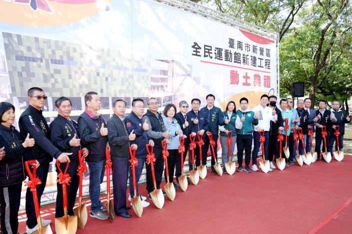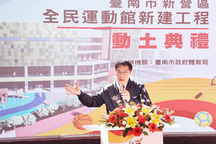 黃偉哲市長表示,包含本次開工的新營區全民運動館,市府規劃投入8.25億元,打造10座全民運動場館,分布溪南溪北,打造台南成為「體育大城」,從發展運動產業、培養全民運動風氣、提供運動空間以及建構選手支持系統幾大面向全面推展台南的體育。扎根在地體育人才、深耕運動實力,此外,也將同步優化各運動場館設備,營造更友善的全民運動樂活城市,實現臺南全民運動及產業發展願景。