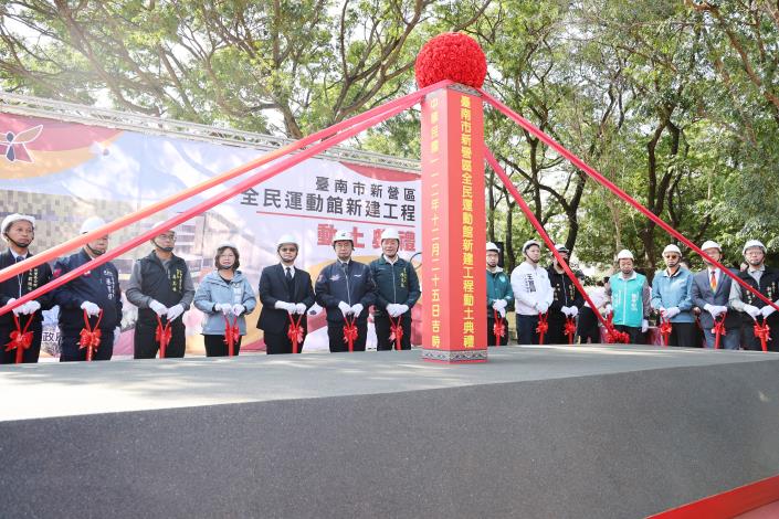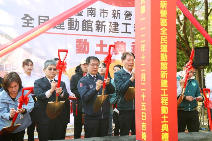 為打造健康運動的幸福城市,提供民眾優質、舒適、安全的運動環境,臺南市政府斥資2億元興建新營區全民運動館,今(25)日舉行動土典禮,預計於114年完工啟用。台南市長黃偉哲、教育部體育署副署長房瑞文、立法委員賴惠員、體育局長陳良乾、新營區長翁振祥及市議員蔡育輝、沈家鳳、王宣貿、李宗翰等多位民意代表到場,祈祝工程順利。