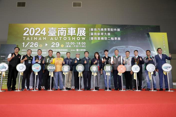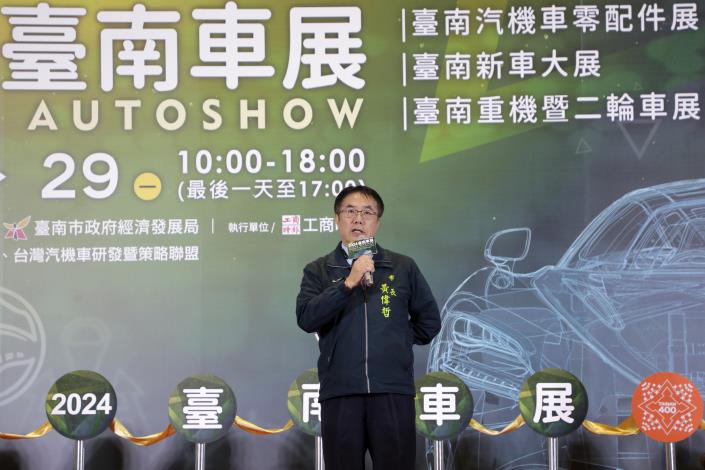 「2024臺南車展 (Tainan Autoshow)」今(26)日大臺南會展中心熱鬧登場,保時捷、麥拉倫、法拉利、藍寶堅尼等超跑助陣,搶眼吸睛。台南市長黃偉哲出席開幕剪綵時表示,臺南車展大受歡迎,顯示南台灣汽機車市場的蓬勃,更集結了汽機車市場場上的一線品牌,為車迷提供了極為豐富的選擇,愛車朋友一定要抓緊機會來參觀。