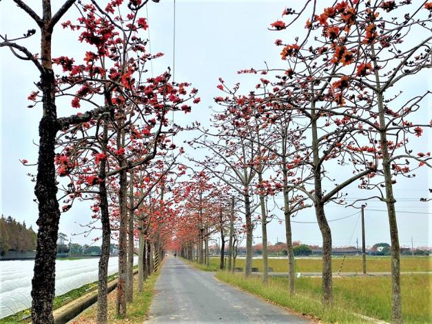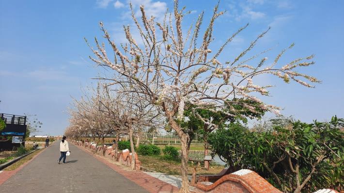 鹽水附近的「鹽水詩路」也種有許多花朵,如木棉花及南洋櫻,此地的木棉花尚未盛開,但園區內的南洋櫻已經開始綻放,此處還有種植香水蓮花,環境十分優美,適合喜歡恬靜氛圍的旅客,另,也先預告學甲光華里的蜀葵田目前尚在種植中,周邊的鼠尾草、火焰雞冠已綻放,也請遊客耐心等待,並請於開幕前不要進入園區,共同維護環境。
