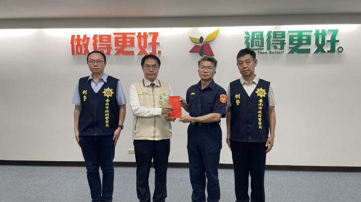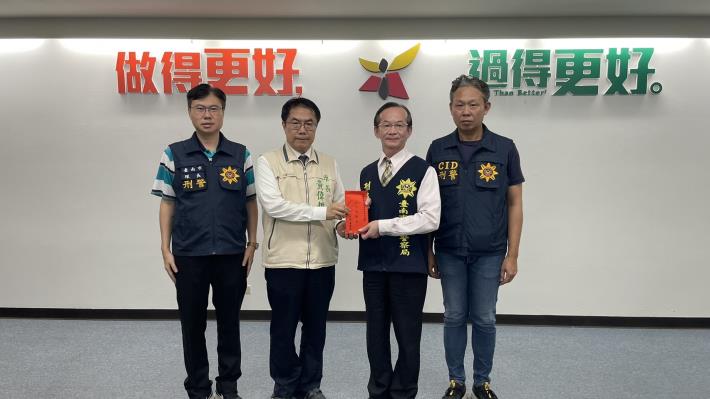 另外,市長也頒獎嘉勉南警局近期偵破重大矚目案件,第五分局偵破重大竊盜案,拘提陳姓犯嫌等4人到案,搜索查扣電纜剪等犯案工具一批,復循線起獲遭竊電纜線計473.5公斤等相關物證。第六分局偵破暴力討債集團案,拘提陳姓犯嫌為首暴力討債集團5人到案,並查扣「本票3本、木棒1支、租賃合約書數份」等贓證物。刑事警察大隊偵五隊偵破查緝治平目標黃○○、幹部李○○等15人到案,查扣「空氣槍1枝、自小客車(價值新臺幣60萬元)、借貸本票110張面額484萬元,手機5支」等大批證物,依違反組織犯罪防制條例,刑法傷害、恐嚇取財、重利等罪移送臺灣臺南地方檢察署偵辦。