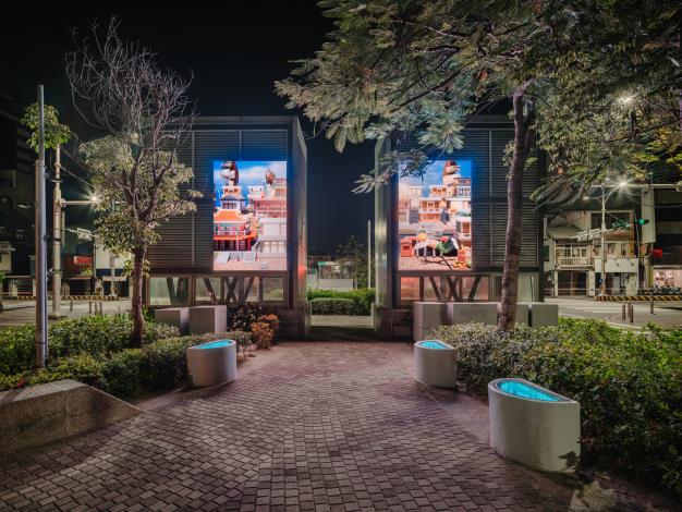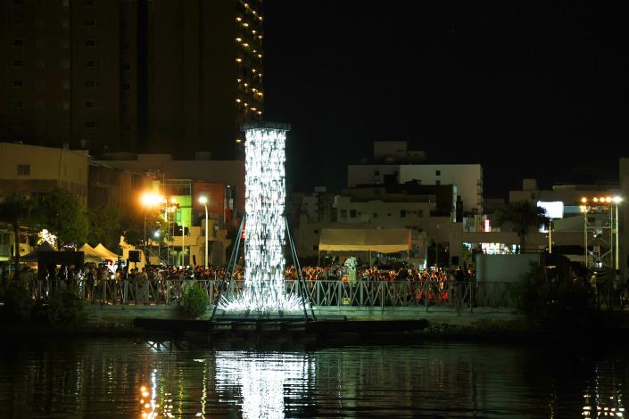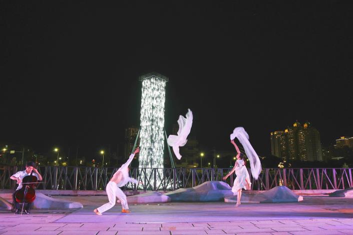 開幕表演活動將延續至14日,由「身知島」舞團與親子、素人及專業舞者以現地場域創作舞碼,於河樂廣場西側水域演出。此次新設13件藝術作品,包含通風塔景觀藝術5件、街道家具6件及運河水岸景觀藝術2件,佈展範圍挑戰首次自陸路延伸至歷史水域,從海安路蔓延至臺南運河水岸,由「身知島」舞團結合作品《時空-瀑布》燈光變化與現地鯤鯓石雕作品共創演出。