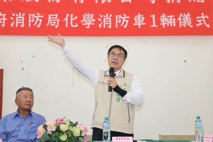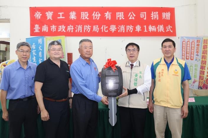 市長黃偉哲指出,「工欲善其事必先利其器」,因應新型態的化學災害,化學消防車投入救災任務便非常重要,非常感謝帝寶工業股份有限公司捐贈價值超過1300萬的化學消防車,讓訓練有素的打火弟兄擁有更精良的設備,以應付不同型態的火災。此外,也期待藉由帝寶工業致贈化學消防車的義行,能達到拋磚引玉的效果,引發更多企業及團體一起共襄盛舉,提升消防救災之能量及資源,以維護市民生命財產之安全,讓每位市民住得安心,讓臺南成為一個宜居、安全的城市。