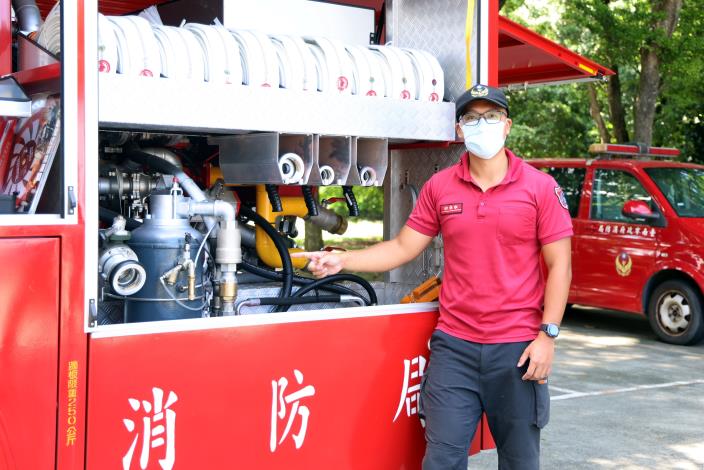 帝寶工業股份有限公司為知名車燈製造商,奉獻社會不遺餘力,過去曾捐贈紅外線熱顯像儀、救護車及災情勘查車給消防局,現在又捐贈化學消防車給新營消防分隊,提供消防人員進行各式災害搶救。該車駕駛室有通過ECE-R29碰撞測試,也包含多項安全行控系統,具備行車視野輔助、盲區警示、車身反光標示及歐規警示燈等行車警告裝置提升行車安全,車上配有CAFS壓縮空氣泡沫混合系統,特別適用於油類火警或化學災害,隨車裝備也配備了五用氣體偵測器、電動排煙機、新型熱顯像儀、各式電動破壞器材及第二預備電源系統等先進救災利器,總價值逾新臺幣1,300萬元,著實提升消防分隊之救災能量,增加救援效率。