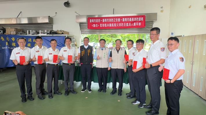 凱米颱風狹帶強大雨量造成台南多處傳出災情,臺南市長黃偉哲今(29)日特別前往消防局第五救災救護大隊,頒發慰問金予警義消各大隊、義消特搜中隊及義消救生中隊,感謝警義消人員於凱米颱風期間執行救災,以無私及勇敢保護了這座城市及市民。