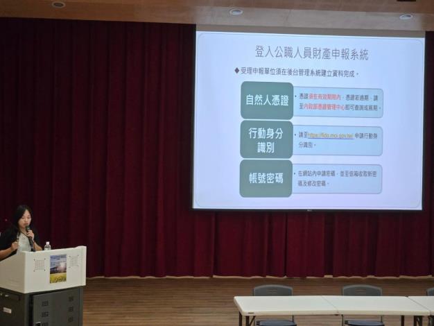 這次宣導說明會,2位講座以實務案例解析的方式,從法規到現行申報流程一一說明,期望能引導教育夥伴誠實申報財產、謹守廉政倫理規範,避免利益衝突,並確保公職人員的清廉作為,全面落實陽光法案的立法精神,營造廉潔風氣。