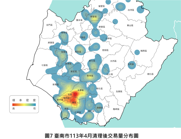 進一步觀察各行政區交易量表現,交易量前三名分別為安南區(404棟)、安平區(382棟)以及東區(333棟)。若與前期相較,多數行政區交易量明顯增加,尤以佳里區最為明顯,本期交易124棟,較上期增加82.35%,安南區本期交易404棟,較上期增加71.19%,主要因本期佳里區內華廈及透天厝完工辦理第一次登記移轉、安南區內九份子地區新建住宅大樓及透天厝完工辦理第一次登記移轉,交易量較上期增加所致。另外,中西區及新營區,交易量增加幅度亦逾4成以上。南科區域本期建物移轉棟數164棟,與前期相較增加19.71%,與去年同期相比亦增加30.16%,其中以善化區增加幅度較大,與前期相較增加21.28%,與去年同期相比亦大幅增加70.15%。反觀歸仁區本期交易169棟,與前期相較大幅減少22.48%,惟與去年同期相比仍大幅增加65.69%,後續各行政區間房市發展仍有待持續觀察。